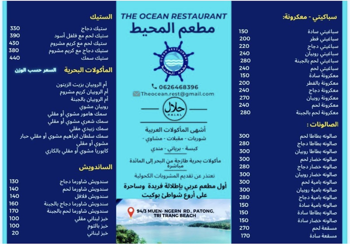 Welcome to The Ocean Restaurant مطعم المحيط, where culinary excellence meets breathtaking views. Nestled along the serene waters of Phuket, this dining gem offers an unforgettable escape for food enthusiasts. The menu is a harmonious blend of authentic Arabic flavors and fresh seafood, ensuring there’s something for every palate.